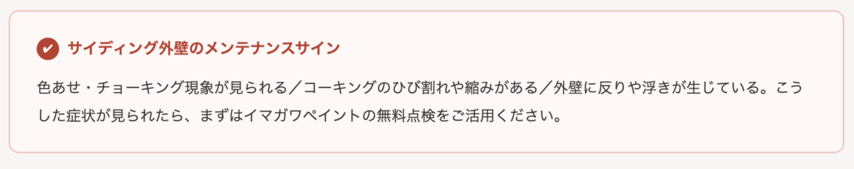- チョーキング・ひび割れ・コーキング劣化などの劣化サインが出たら早めの点検を。